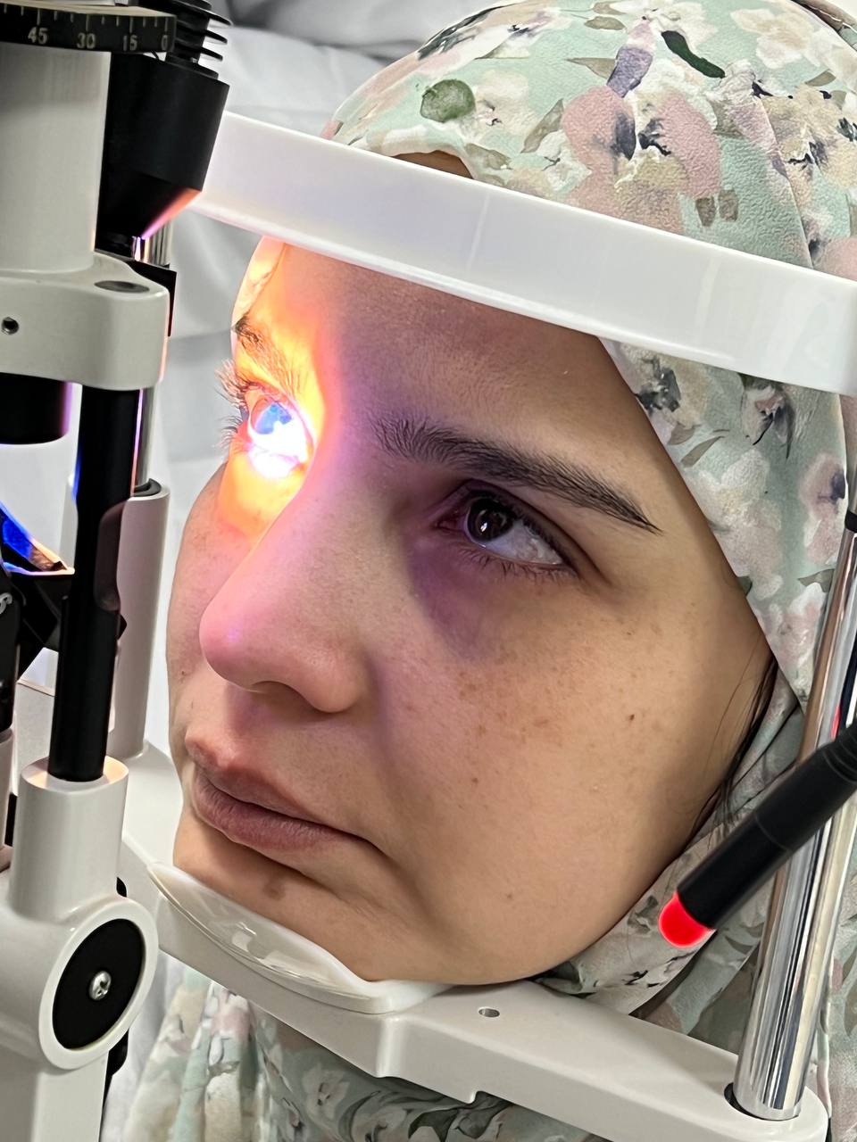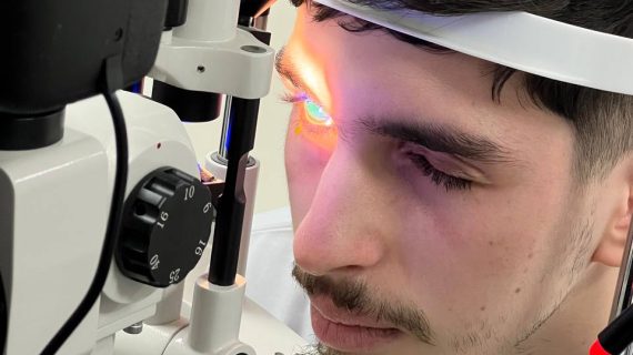 - Examen du segment antérieur à l’aide de la lampe à fente, pour analyser la cornée, l’iris et le cristallin, étape cruciale dans le diagnostic des anomalies visuelles.