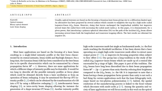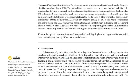 Une innovation dans l’optimisation des performances des pinces optiques grâce à des éléments diffractifs simples.