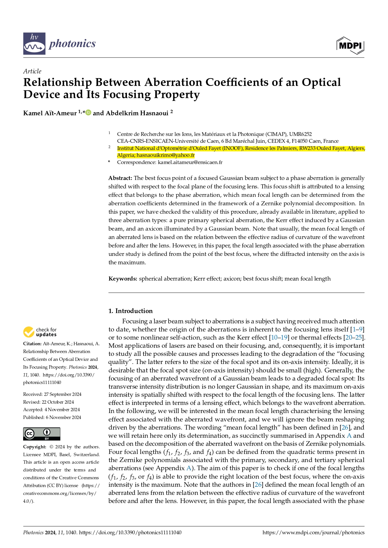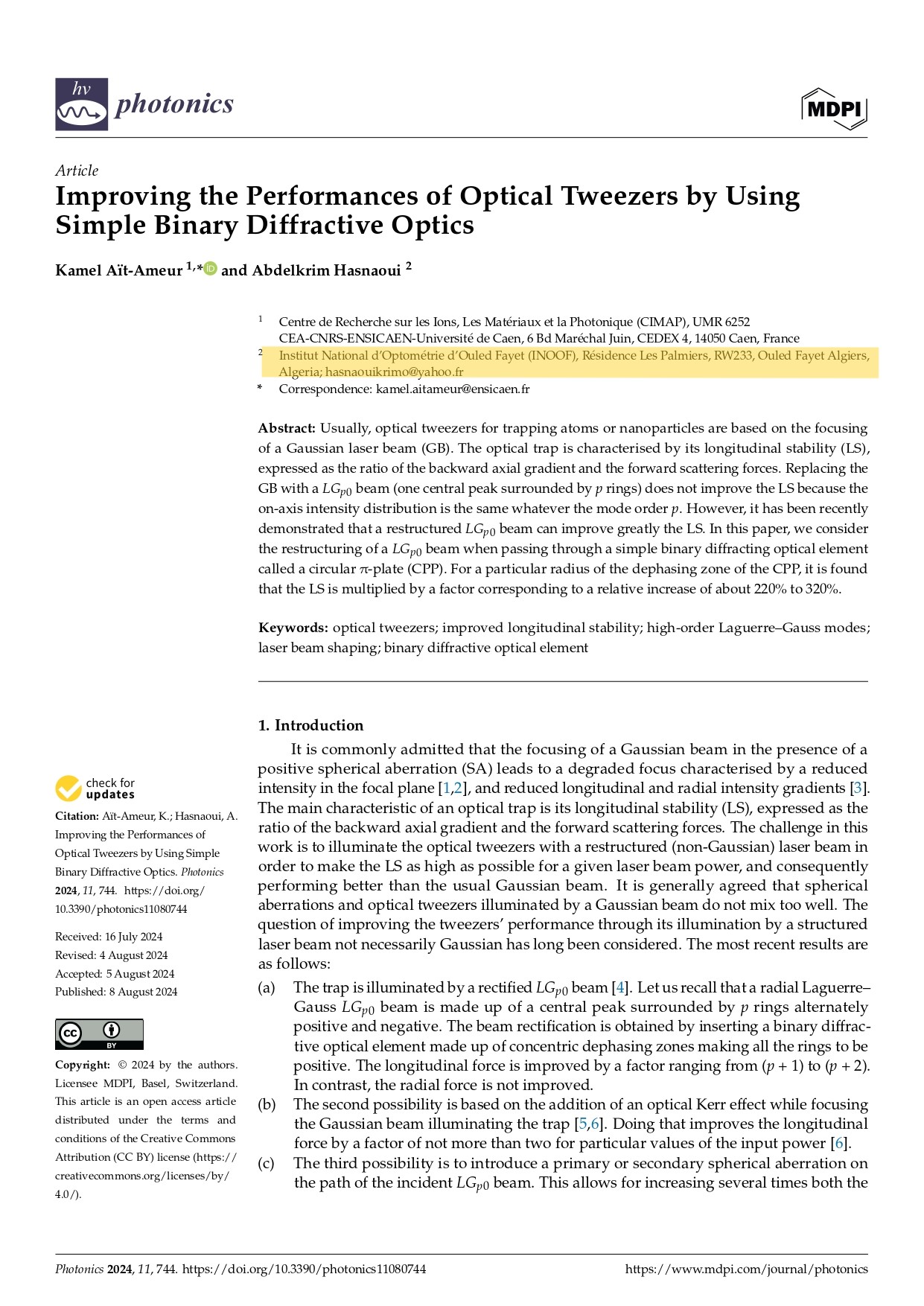L’Institut National d’Optométrie d’Ouled Fayet (INOOF) a récemment été cité dans des revues renommées telles que MDPI Photonics et Optics Communications, confirmant son rôle de leader dans le développement des sciences optiques et de la photonique.